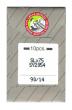 Jehly pro domácí overlocky Singer, označení SY2054. Použití: úplety, pružné materiály, materiály s elastanem Velikost jehly: síla #90 S...